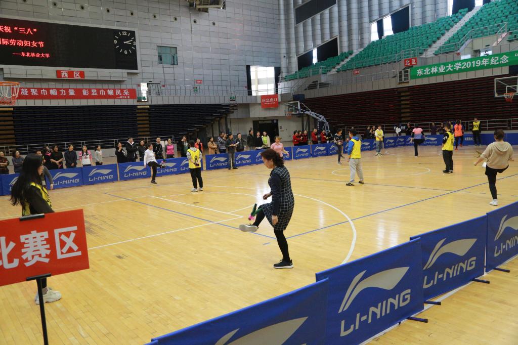 36日,女教工的跳绳、踢键比赛拉开本次系列活动的序幕,21个基层工会代表队参加了比赛。比赛中,女教工们身轻如燕、密切协作、毽飞绳舞、扣人心弦。经过激烈的比拼,最终野生动物资源学院获得跳绳、踢键两项团体比赛冠军,成为本次比赛的双冠王。