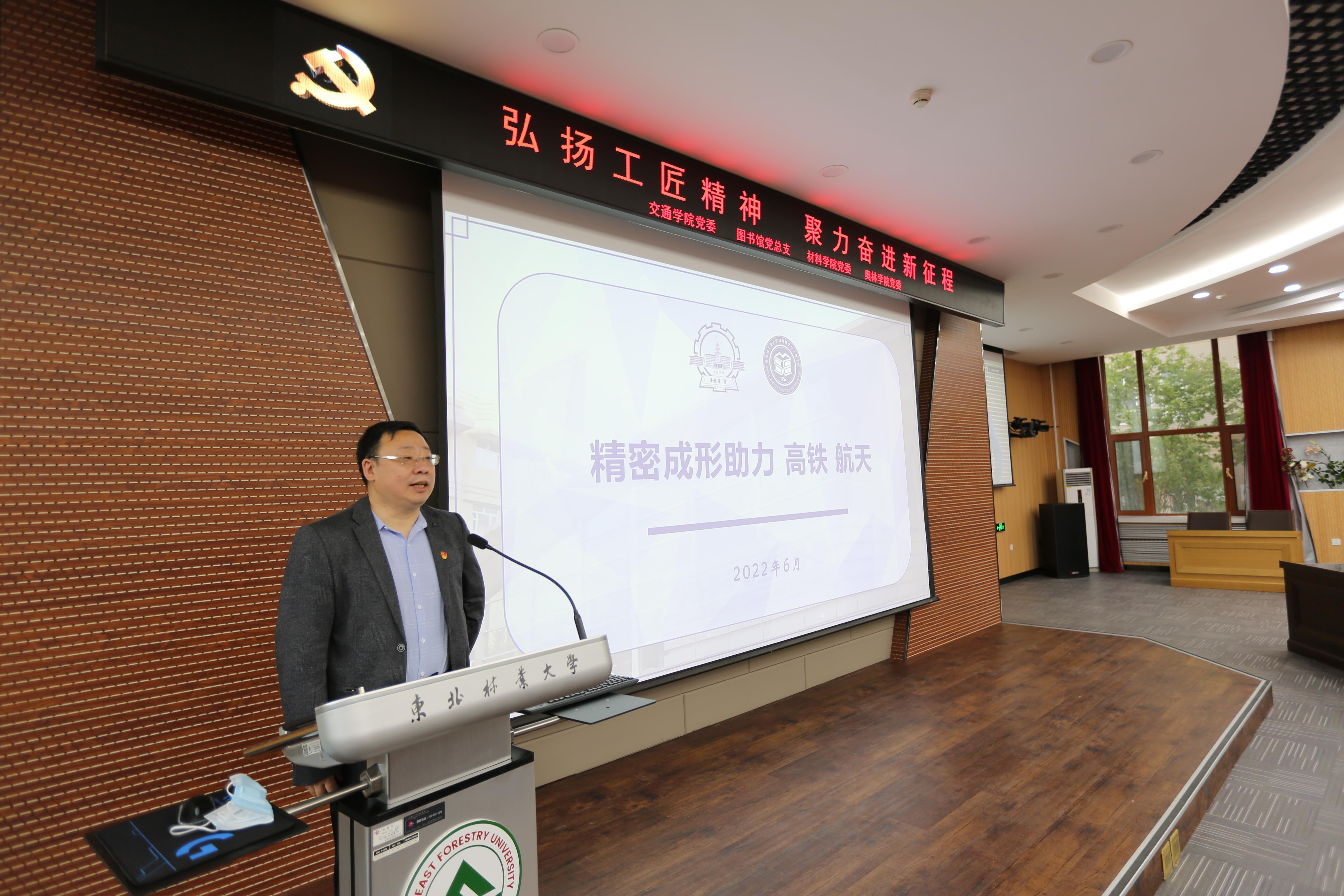 6月1日,材料科学与技术学院、交通学院、奥林学院、图书馆工会联合举办了“弘扬工匠精神,聚力奋进新征程”主题报告会,邀请黑龙江省“龙江工匠”荣誉获得者、哈尔滨工业大学材料科学学院王国峰教授结合自身参与高铁、航天相关科研和实践工作经历,同与会教师和研究生们交流“路远且长,久久为功”“不怕挑战,敢于担当”“不走捷径,只走最远的路”的科研和工匠精神,分享“把文章写在祖国大地,写在龙江大地”的工匠故事。与会师生深受鼓舞,大家纷纷表示,要立足本职岗位,不断提升教学科研能力,更好地服务龙江经济社会发展,为推动龙江全面振兴全方位振兴做出更大贡献。