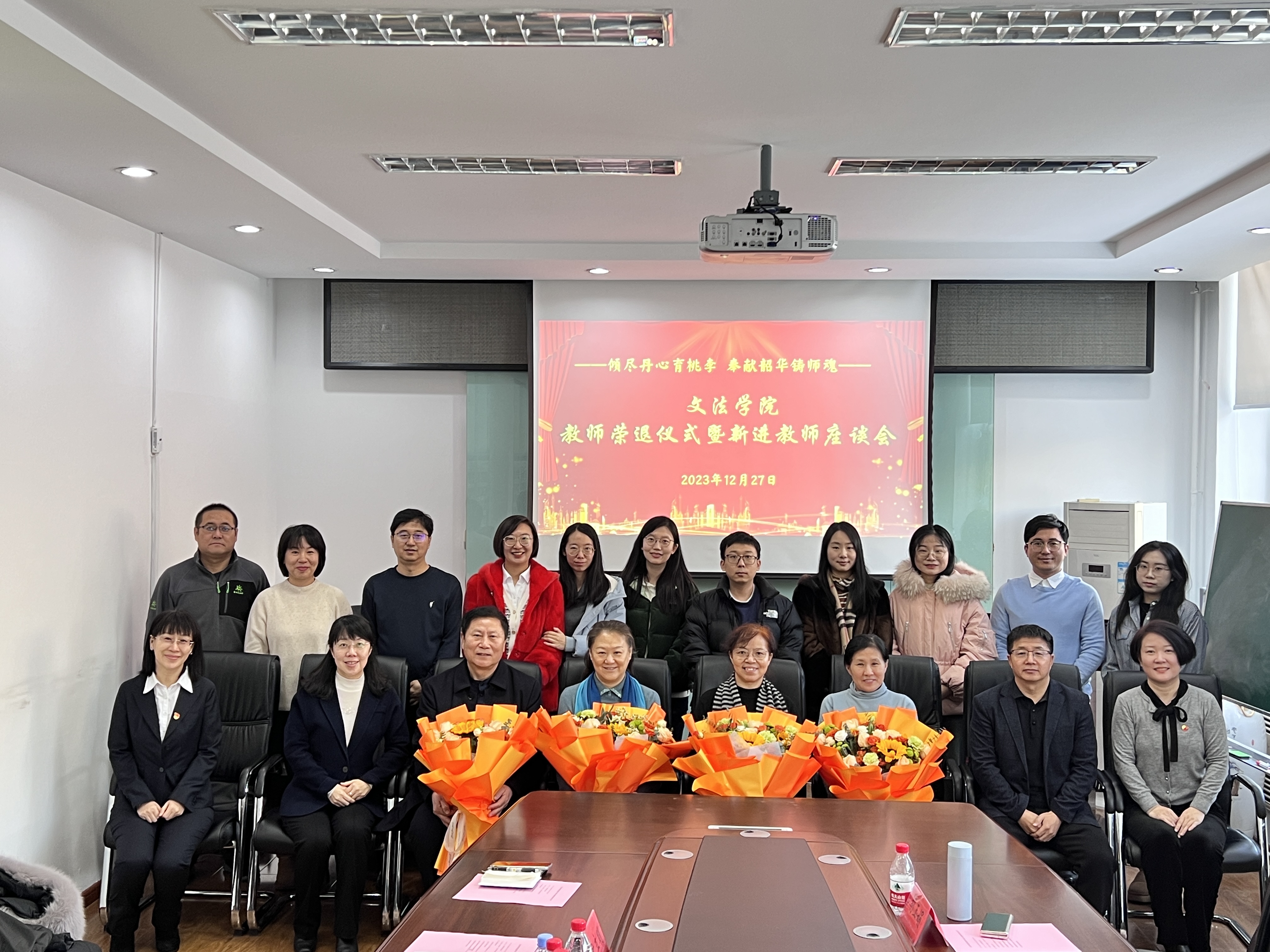 12月27日上午,文法学院在学院会议室举行教师荣休仪式暨新入职教师座谈会。荣休教师代表、文法学院党政领导班子、各专业负责人、工会主席及全体新入职教师参加座谈会。座谈会由文法学院党委书记侯彦杰主持。