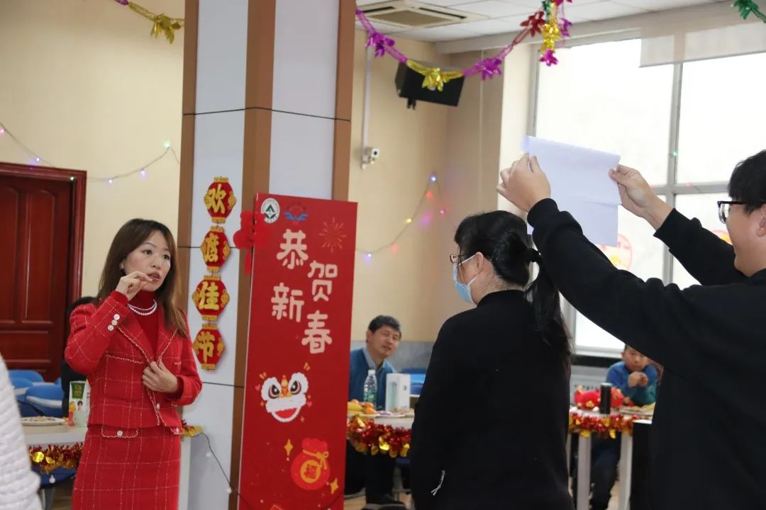 联欢会以孙巍老师一曲《我们的生活充满阳光》拉开帷幕,独唱、合唱、钢琴独奏等节目一一亮相,引得满堂彩;蒙眼作画、你比划我猜、抢椅子、顶气球等游戏项目集娱乐性、协作性和竞争性于一体,老师们积极参加,欢声笑语不断;现场抽奖环节,惊喜连连,将一份份幸运与祝福送给老师们。