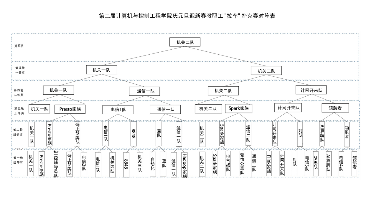 比赛共进行5轮激烈角逐,每一轮比拼都是对选手们牌技与团队协作能力的考验。这个过程中,大家不仅展示了高超的扑克技巧,更将东林“人拉犁”精神中的团结协作发挥得淋漓尽致。从八强赛到决赛完毕共经历7个多小时的鏖战,最终“机关二队”凭借出色的发挥和稳定的心态技压群雄,摘得本次比赛冠军。学院机关、电子信息工程、通信工程三个单位获得“最佳组织奖”。
