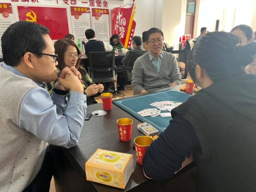 2024年的最后一天,计算机与控制工程学院内欢声笑语、暖意融融,由学院工会精心组织的第二届“庆元旦迎新春”教职工“拉车”扑克比赛在成栋楼926室隆重举行。此次活动旨在丰富教职工的业余文化生活,促进教职工间的交流合作,增强团队凝聚力,传承东林“人拉犁”精神,用轻松愉快心情迎接崭新的一年。