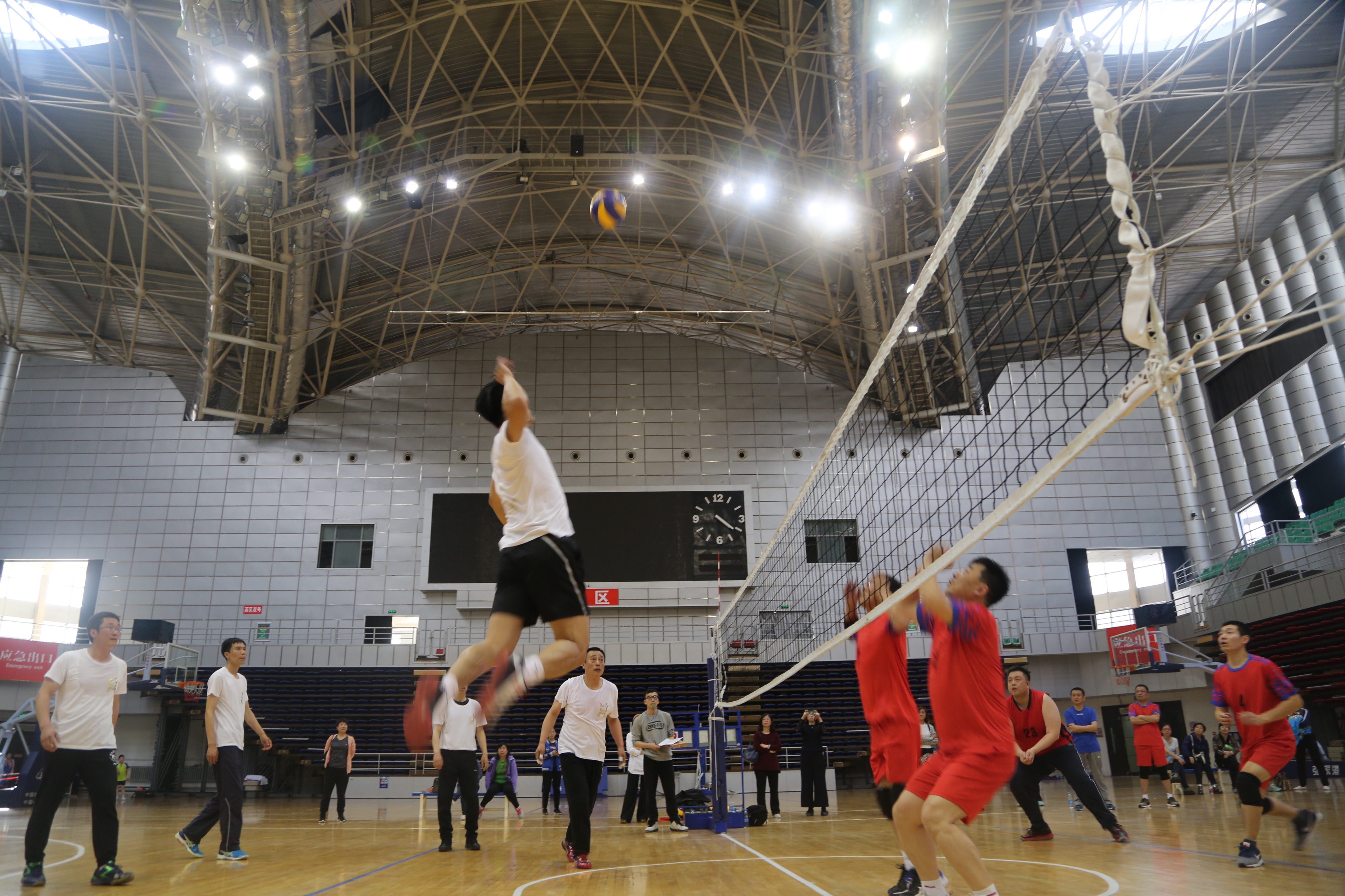 一年来,在学校的支持下,校工会与体育部、体育场馆管理中心合作推动将体育馆的篮球、排球、羽毛球场地向教职工免费开放,各基层工会充分利用体育场馆的便利,积极组织教职工参加业余体育锻炼,尤其是排球运动得到了众多教职工的积极参与,比赛场上大家表现出了更高的控球技术和更加专业的战术水平。