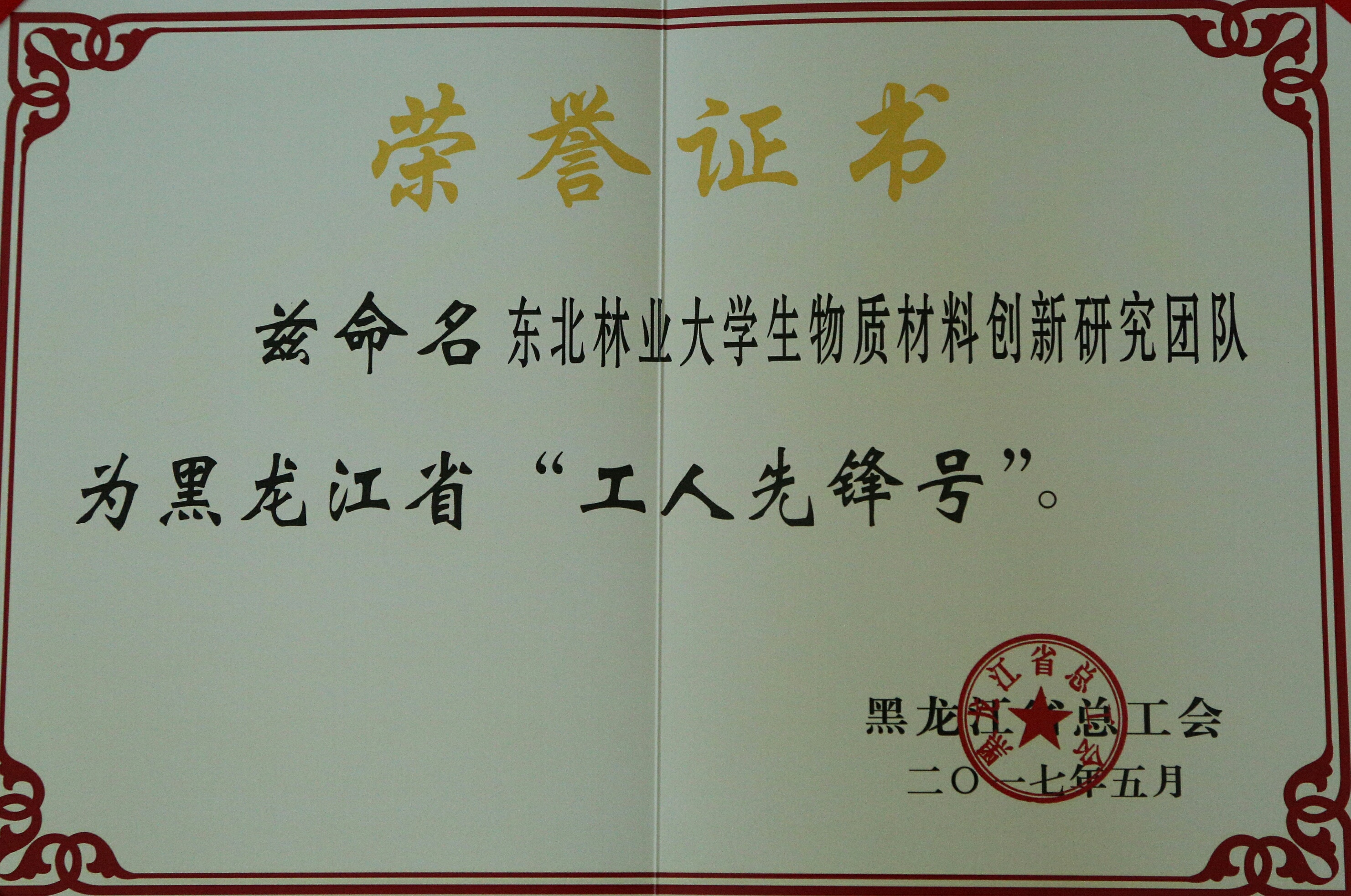 ,近日,按照《全国工人先锋号评选管理工作暂行办法》(总工发[2011]77号)的相关标准,经过黑龙江省总工会的层层选拔,我校李坚院士率领的生物质材料研究创新团队获得了“黑龙江省工人先锋号”的荣誉称号。