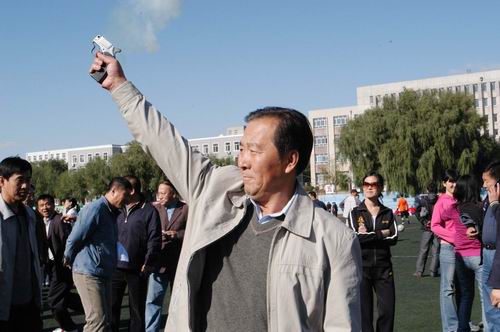 东北林业大学2010年迎国庆教职工越野赛于9月29日下午在校体育场举行,这次活动是校工会为活跃教职工文化生活,提高教职工身体素质,喜迎建国61周年举办的。比赛按年龄分A、B两组,B组起点从体育场出发由东门途经信息学院至体育场北门返回结束,全长1000多米,A组由体育场出发由北门经信息学院、行政楼、家属区至体育场绕一周结束,全长2000多米。