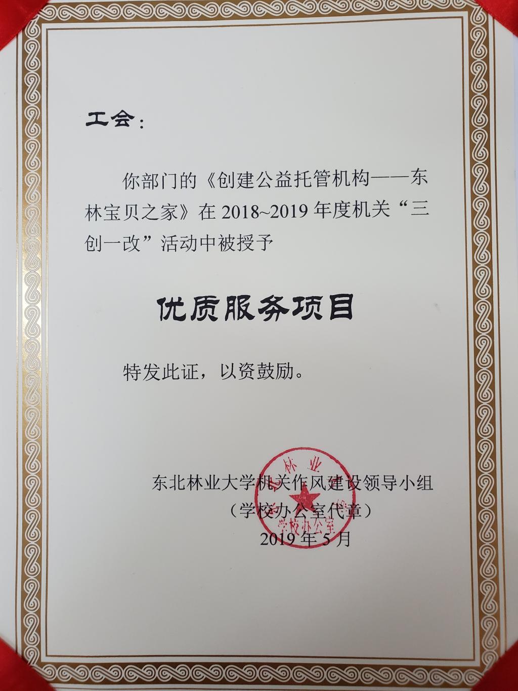 6月12日,在学校机关作风建设推进暨“三创一改”活动表彰大会上,校工会申报的《创建公益托管机构——东林宝贝之家》项目被学校授予2018-2019年“优质服务项目”。