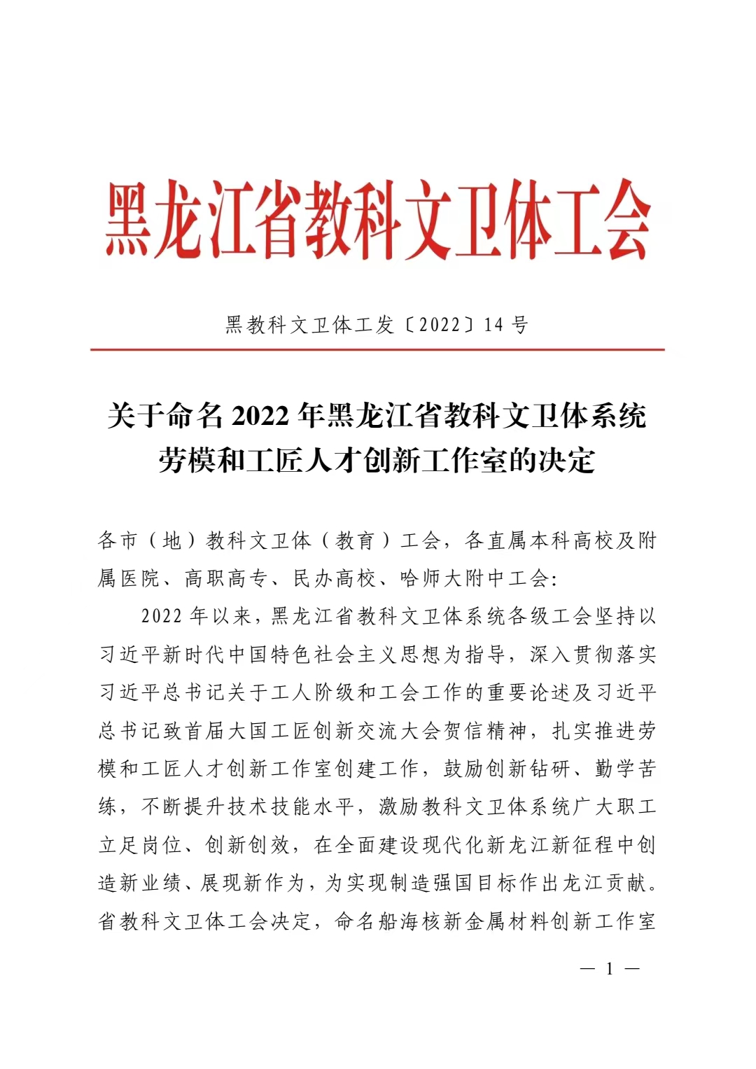 省教科文卫体系统“劳模和工匠人才创新工作室”评选活动由省教科文卫体工会组织开展,旨在大力弘扬劳模精神、劳动精神、工匠精神,激励全省教科文卫体系统广大职工立足岗位、创新创效,进一步增强创新意识、培养创新思维,在全面建设现代化新龙江新征程中创造新业绩、展现新作为。