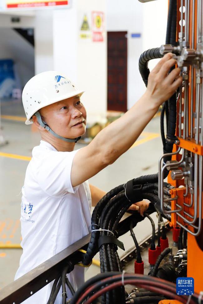 万步炎在湖南科技大学海洋实验室工作(2022年7月25日摄)。(新华社发)