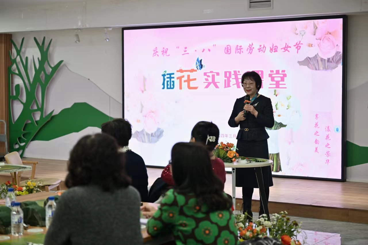 陈文慧代表学校党委和行政为全校女教职工送上了节日的祝福,她希望通过学习插花,培养女教职工爱美、知美、会美的情趣,不断发掘自我、表达自我,用善于发现美的眼睛,感受生活的美好,创造精彩的人生。