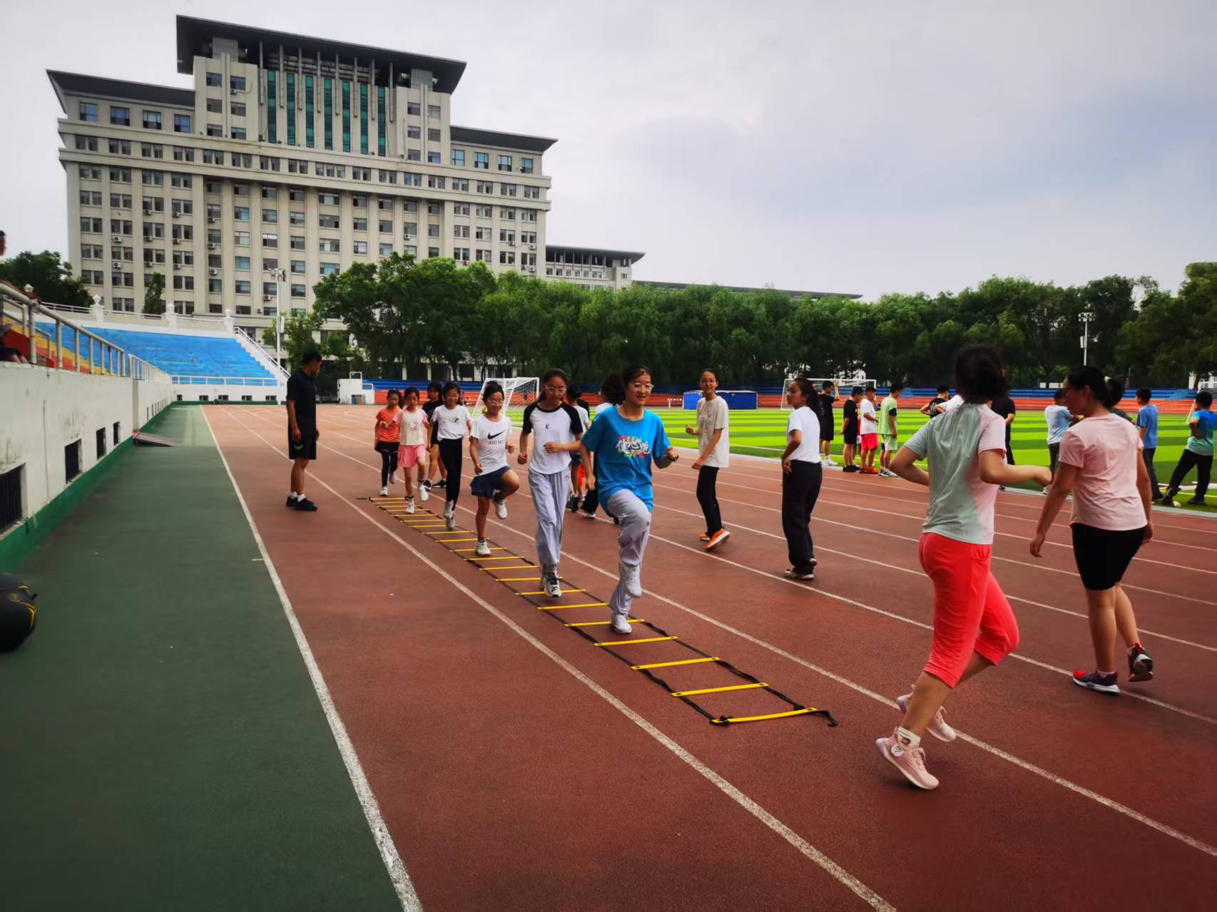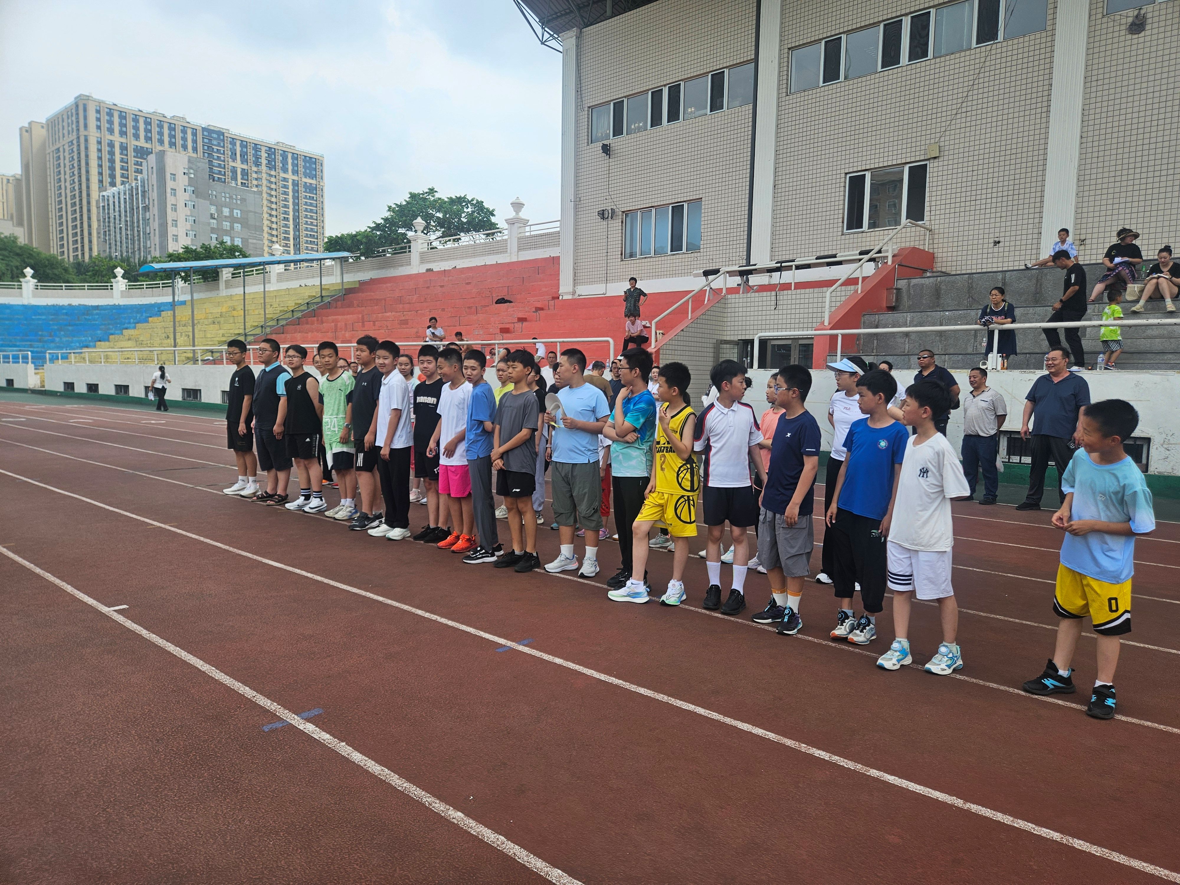 六月的微风裹挟着清脆鸟鸣掠过东林体育场,绿茵场上跃动着鲜活身影,40余名教职工子女,在体育部副主任王孝健,体育教师陈东、史小龙、杨睿以及2名专业学生组成的教练团队的带领下,开启了一场别具意义的成长之旅。此次由学校工会与体育部携手策划的“助力成长・‘体’验未来”新中考体育公益培训活动,以专业为笔、以温情为墨,为孩子们勾勒出科学备战中考体育的清晰路径。