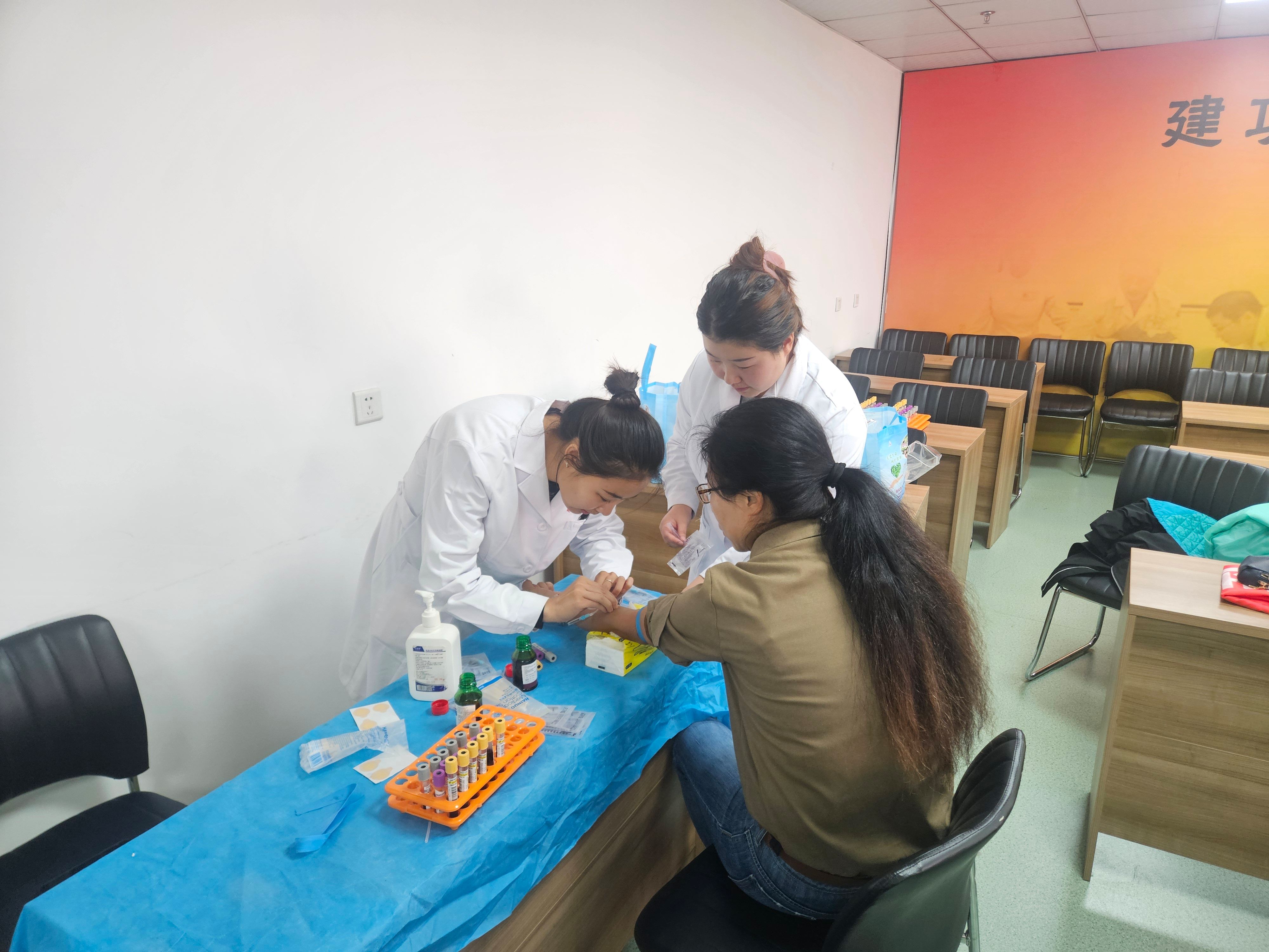 10月21日上午8:30,学校医院2号楼2楼会议室人头攒动,活动有序开展。文政社区卫生服务中心医务人员耐心细致地为前来筛查的教职工进行预约登记、测量血压,安排采样、抽血等流程,并讲解常见病、多发病的预防知识,提供一对一的健康咨询服务与保健指导。