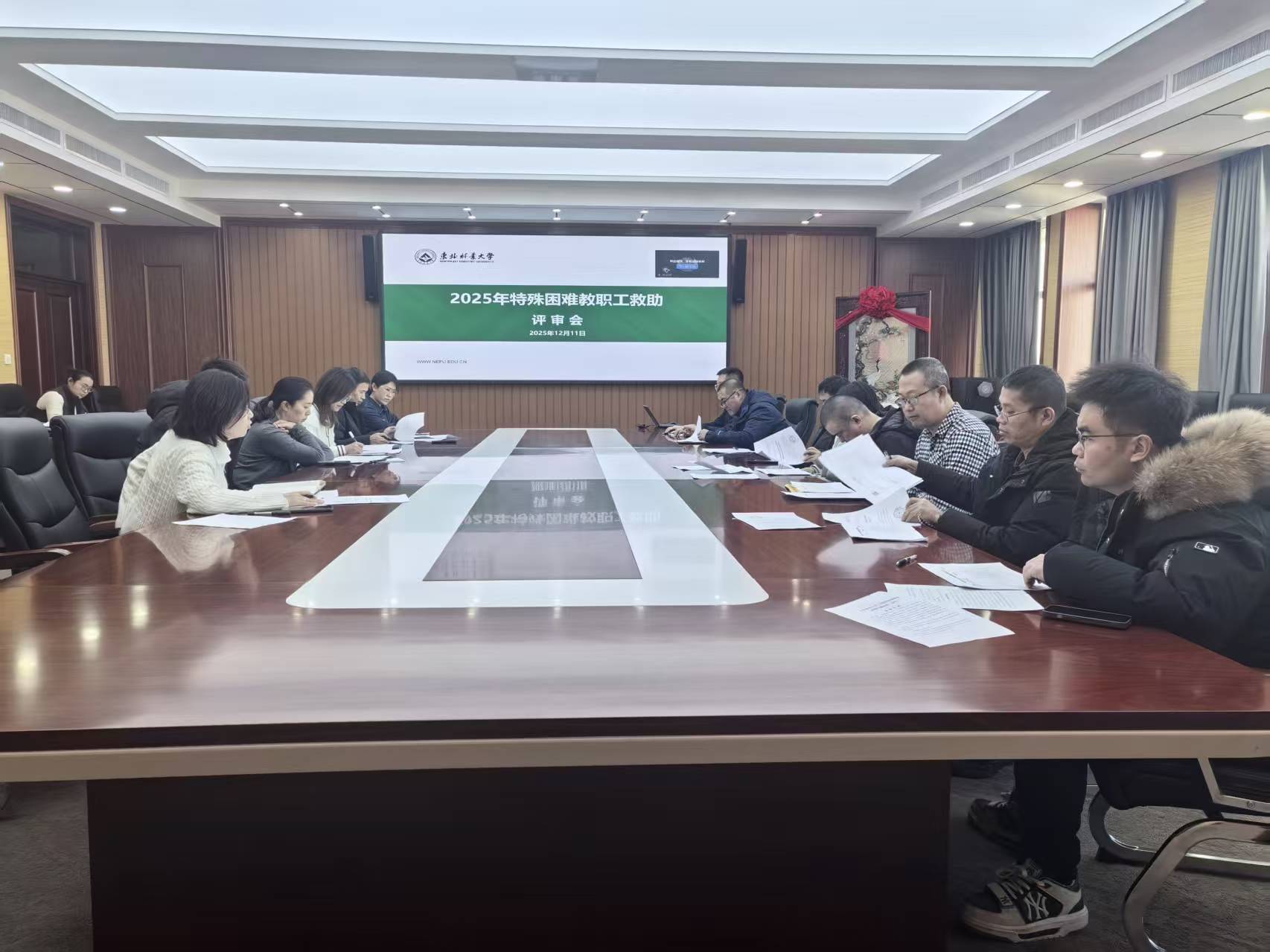 学校工会于11月24日启动2025年度困难教职工送温暖工作,在个人申报、基层党委审核、走访调研基础上,12月11日上午,先后在综合楼612会议室和1008会议室召开了困难教职工补助和特殊困难教职工救助评审工作会议,扎实做好年度困难教职工送温暖工作。党委常委、副校长张春雷出席会议并提出评审原则和要求,工会副主席朱立明主持会议。