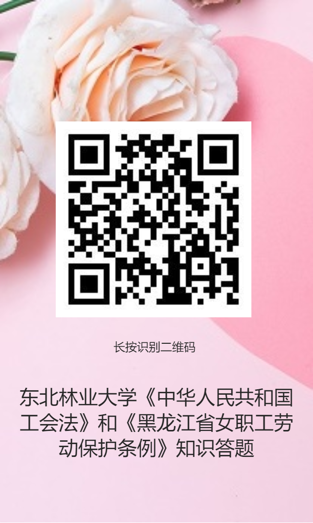 为认真学习贯彻习近平新时代中国特色社会主义思想,全面贯彻党的十九大和十九届历次全会精神,贯彻落实《中国妇女发展纲要(2021-2030)》,学习宣传新修订的《中华人民共和国工会法》和《黑龙江省女职工劳动保护条例》,引导广大教职员工不断增强法制意识和维权意识,推进和谐社会建设,特举办“情系教职工∙法在你身边”知识答题活动。