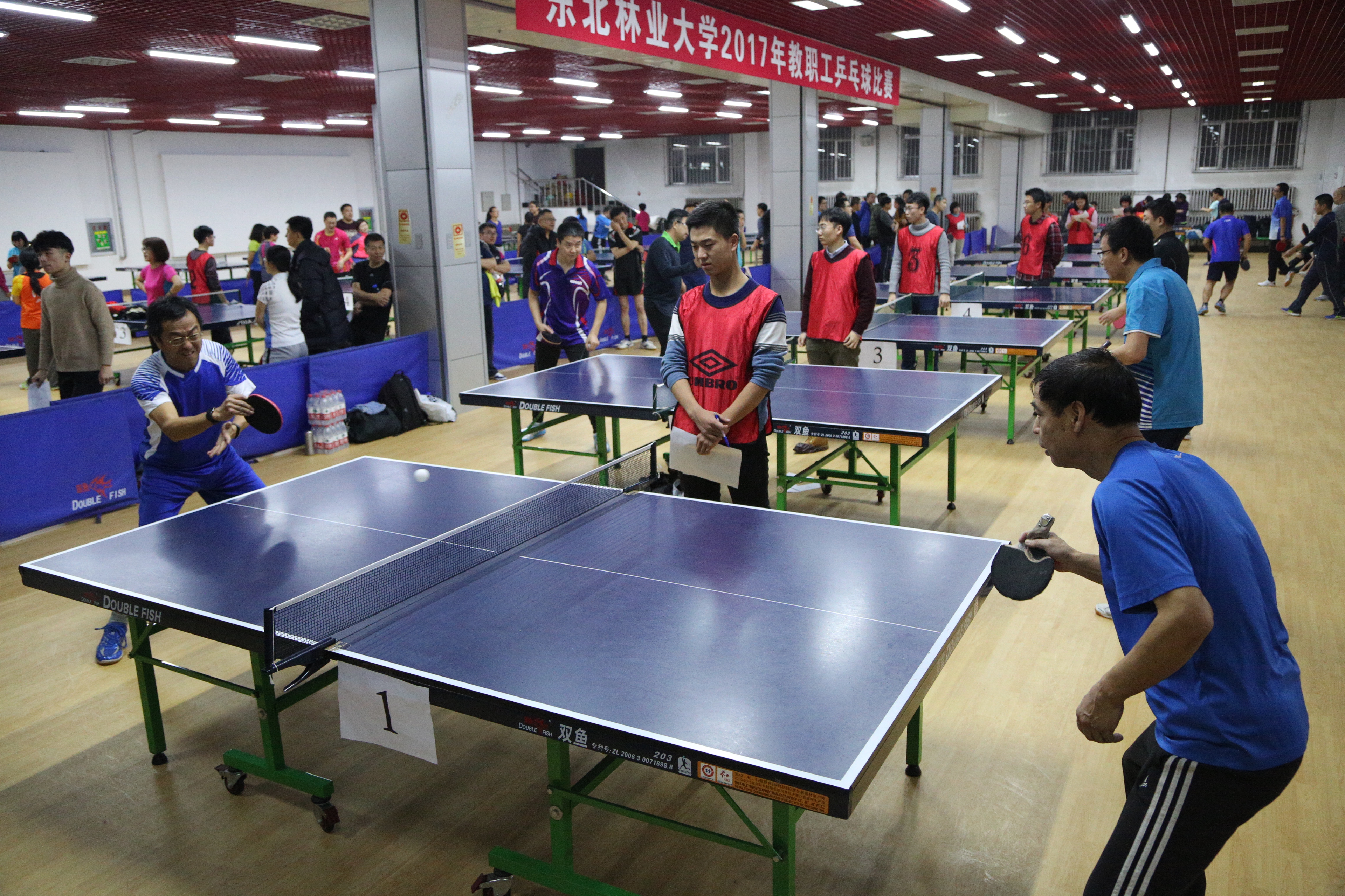 ,2017年教职工乒乓球比赛于12月7-8日下午在体育馆顺利举行,22个基层工会的16支男子团体和12支女子团体代表队参加了比赛,本次赛事设置了男、女团体,男、女单打四个项目。男团决赛仍在体育部和经济管理学院代表队中展开,是一场高水平的较量,两队队员充分展示了精湛的球技,娴熟的球法。最终体育部以3:1获胜。